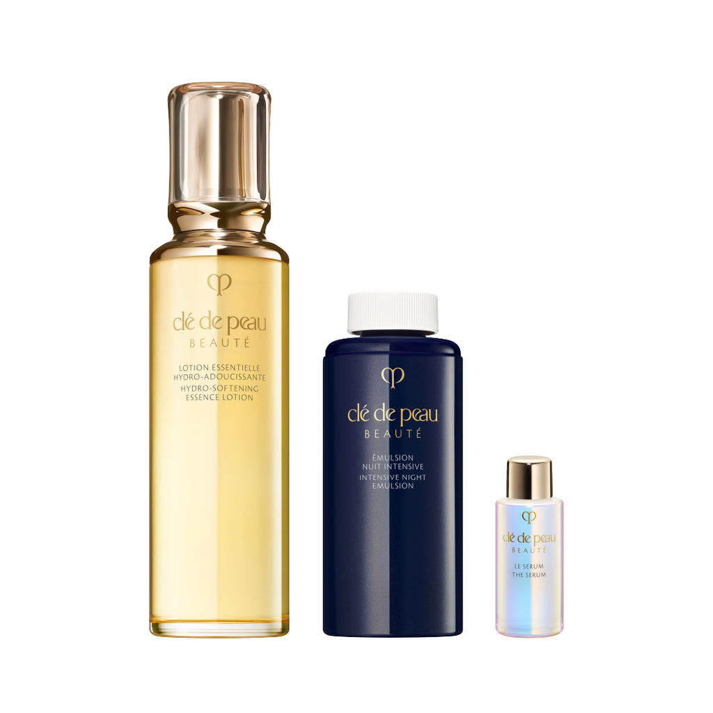 濃密なうるおいで肌を満たし、透明感あふれるしなやかな肌へと導く化粧水、夜の肌に必要なうるおいが長時間続く夜用の乳液と、ル・セラムⅡの特製サイズ(7mL)がセットに。