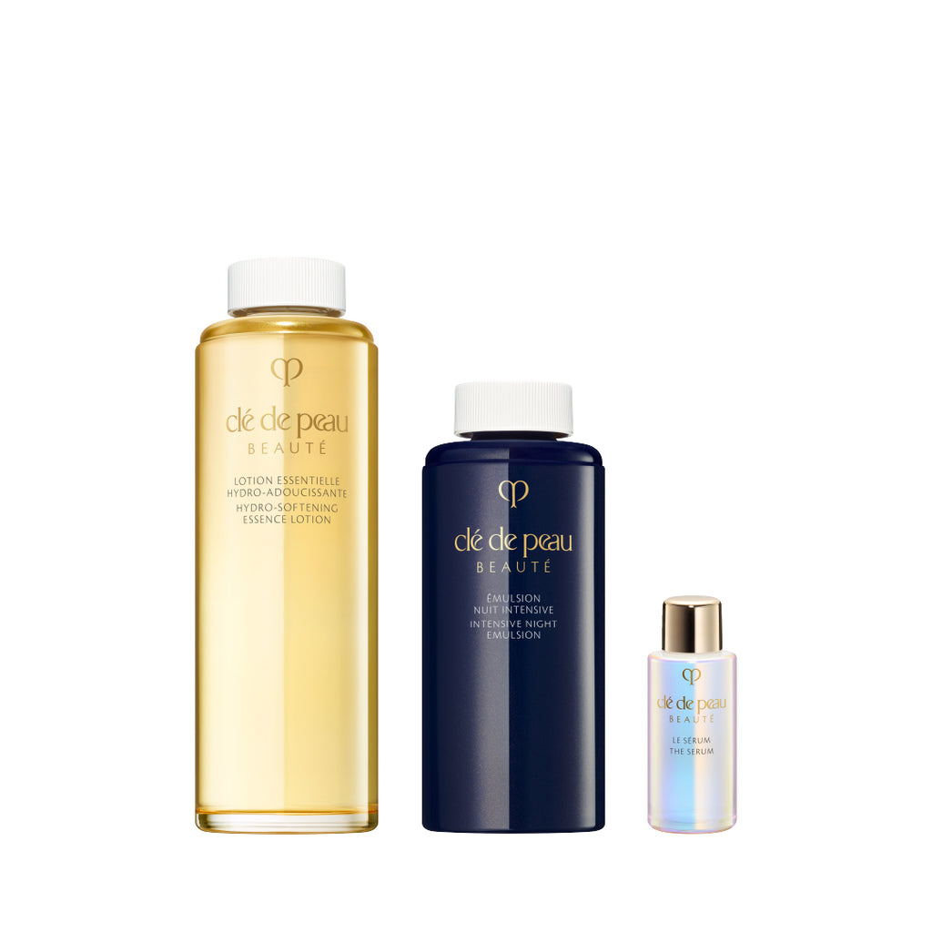 濃密なうるおいで肌を満たし、透明感あふれるしなやかな肌へと導く化粧水、夜の肌に必要なうるおいが長時間続く夜用の乳液と、ル・セラムⅡの特製サイズ(7mL)がセットに。