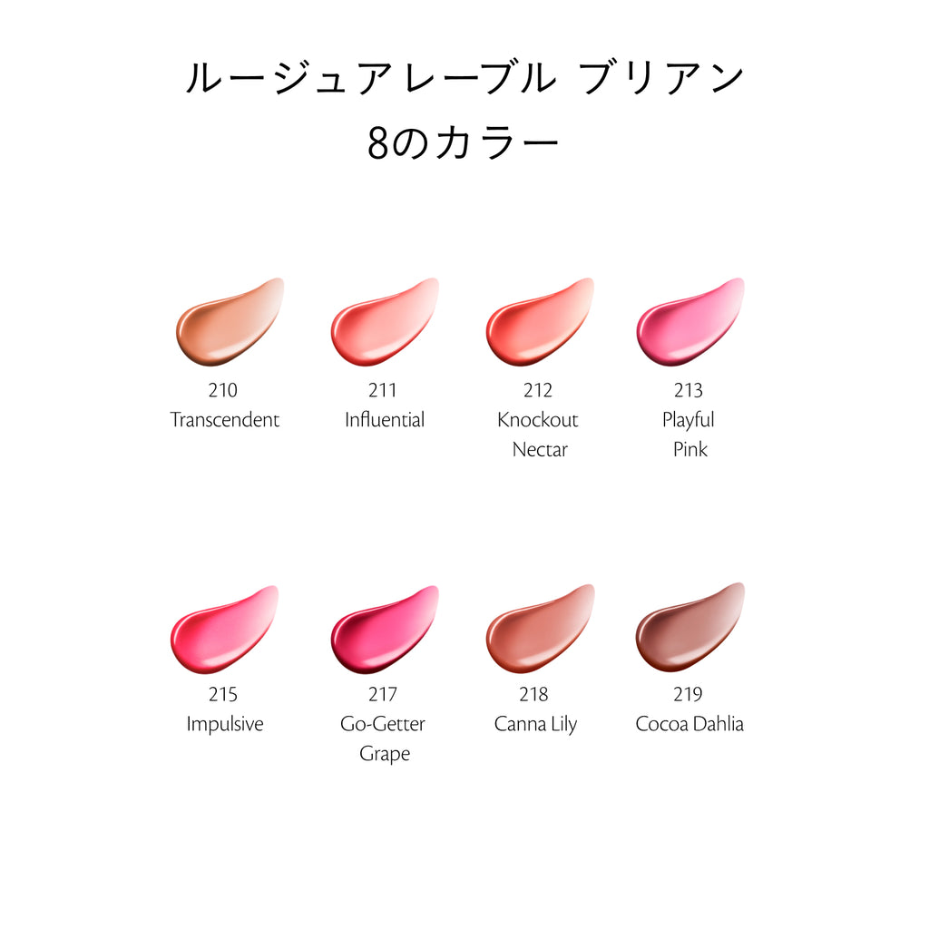 贅沢なつやと透明感がふっくらとした唇を演出し、肌まで明るく輝かせるラグジュアリールージュです。
